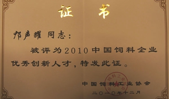 中國飼料工業(yè)協(xié)會(huì )授予四川省畜科公司董事長(cháng)鄺聲耀研究員“2010中國飼料企業(yè)優(yōu)秀創(chuàng )新人才獎”。